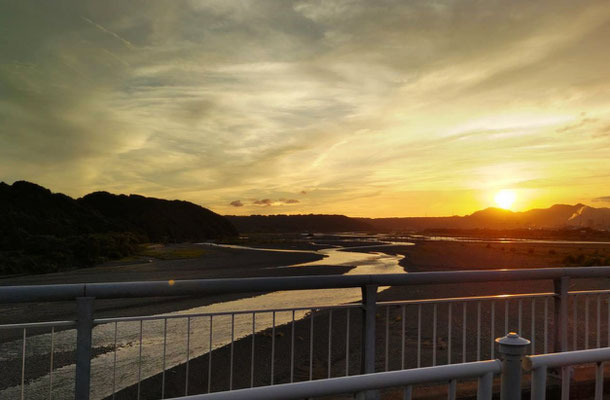 ③は大井川渡河中に西を見るの図。助手席の奥方が撮影。