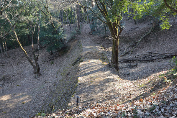 案外となだらかで、現状は堆積物に覆われていて段差がハッキリと浮かび上がっていませんが、それでも往時の形状は推測できるというもの。