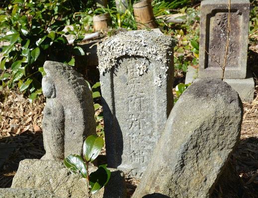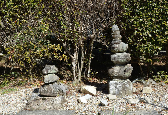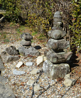 住職がいらっしゃらない時期が長かったせいか、タダ者の墓石とは思えないこちらの小型仏塔(宝篋印塔)の残欠は、無意味に積み重ねられていました。