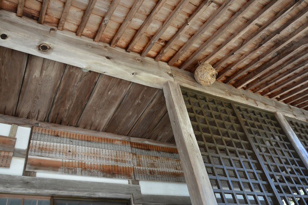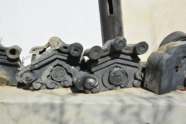 旧本堂の下り棟の瓦でしょうか、家紋の立葵がその出自(本多系)を示唆しているようにも。