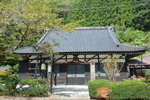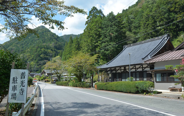 その151号線別所街道から県道80号に左に折れてしばらく、北設楽郡東栄町振草古戸という地を走ると右手に参道の無い道路前に「イキナリ本堂」、しかも良き佇まいの普光寺というお寺がありました。1740年建立の本堂ですから、今年で285年の木造建築物になります。