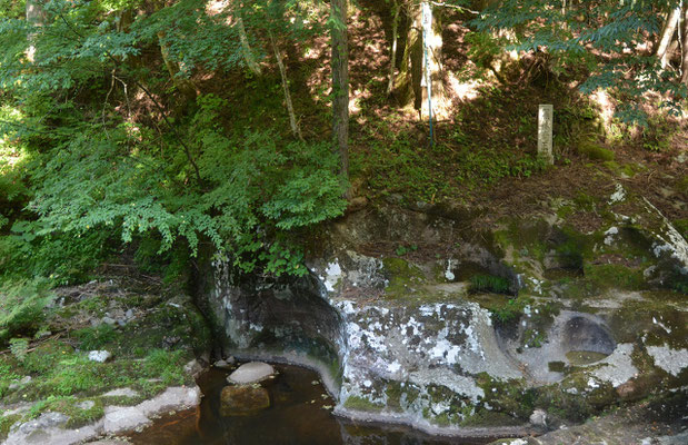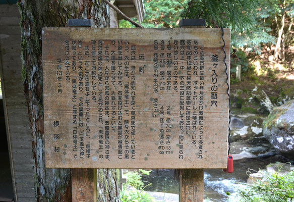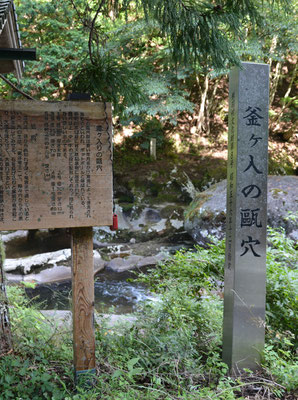 そこに「釜ヶ入の甌穴」なる掲示板と祠が。