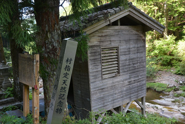 その流れに張り出すように不安定にある祠の掲示板を見て驚きました、