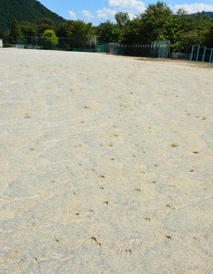 その後校庭を突っ切って次の目標を求めて歩いたわけですがその際、無数の動物の足跡が⑤。