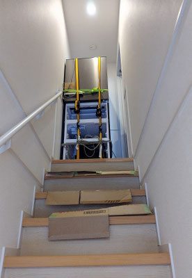 帰り途は⑦の如く2階から降ろして積み込んだ冷蔵庫。引き出し3段は取り外し済。
